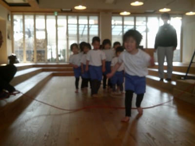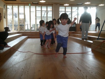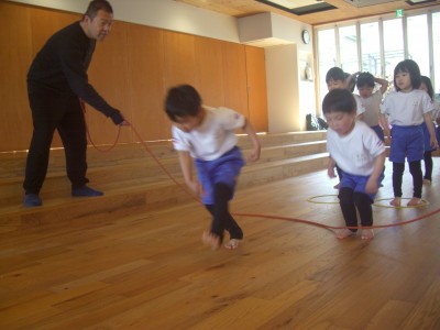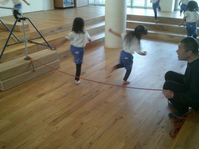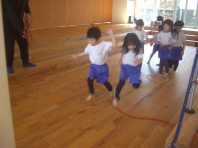 動く縄を飛び越えたり縄が回っているところをくぐりぬけたりしました!