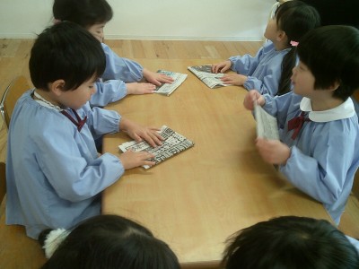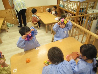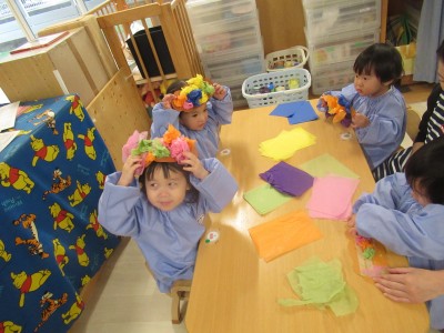 出来上がった鬼の帽子を被ることが楽しみですね(o^―^o)