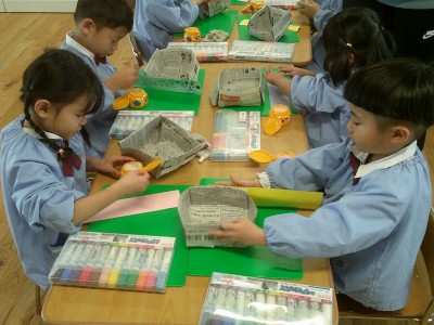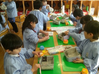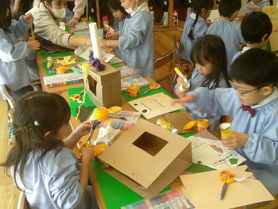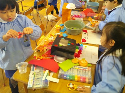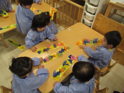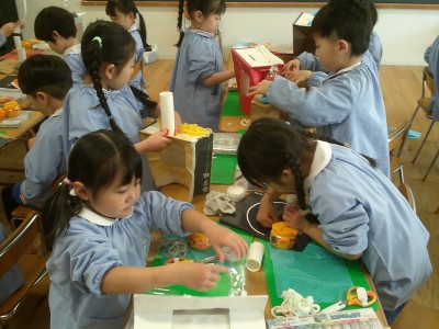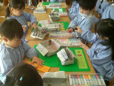 4歳児クラス節分に向け、製作に取り組みました(^^)