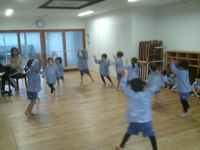 ピアノの音に合わせて走ったり、ジャンプしたり・・・♪