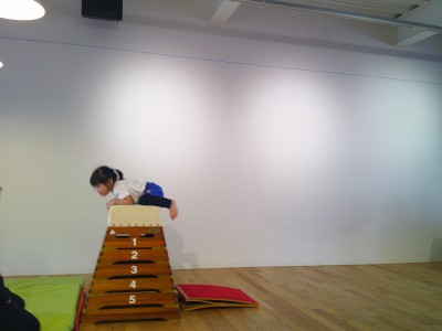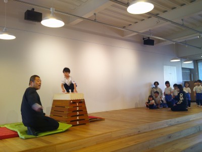 3歳児クラス来週はいよいよ運動参観!みんな参観に向けて頑張っています。今回はとび箱の4段から…ジャンプして飛び乗り、うまくいくと少しずつ高くなり6段7段そしてなんと8段に挑戦です!!助走をつけてエイッとジャンプ!8段に成功するとみんなから「すごーい」と拍手!