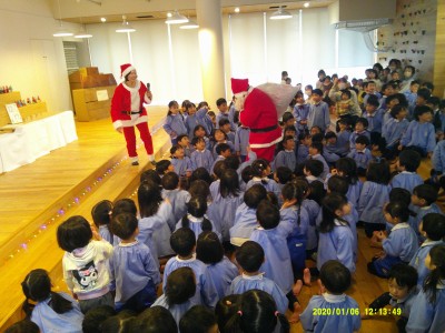 プレゼントを持ってきてくれたお礼に、みんなからは『赤鼻のトナカイ』を歌って踊ってプレゼントしました☆
