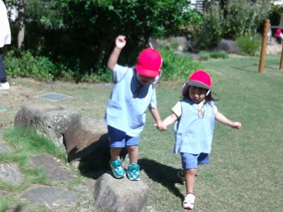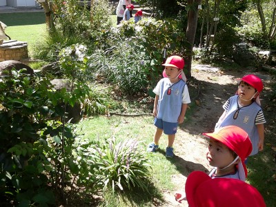 園庭でお散歩をしてみると...