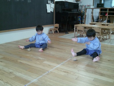 2歳児クラス待ちに待った、こま回し大会がありました!