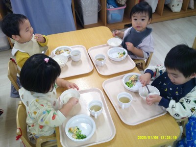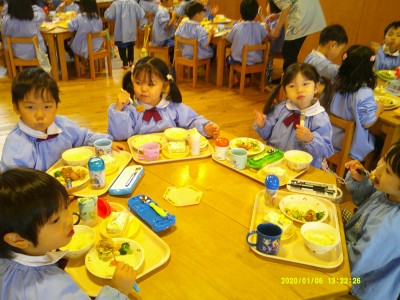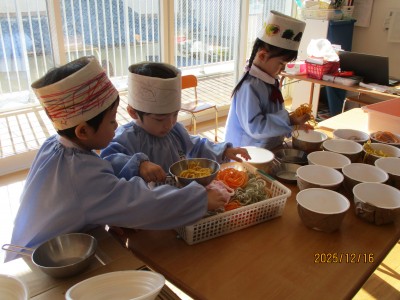 0歳児クラス 1歳児クラス 2歳児クラス 3歳児クラス 4歳児クラス 5歳児クラス その他今日はクリスマス会があり、給食もクリスマスメニューでした☆