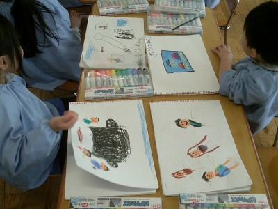 冬休みの思い出を絵に描いて、発表しました(^^)