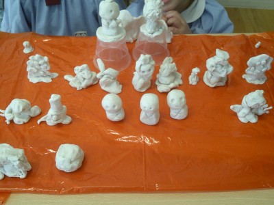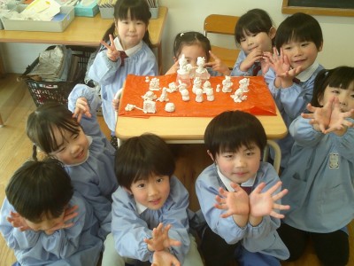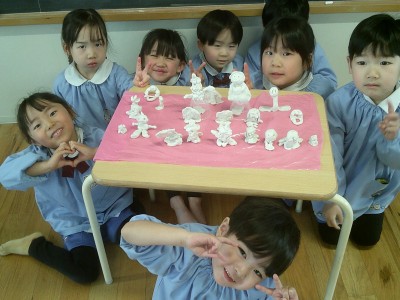 水曜日、粘土でひな人形を作ってみました(^^)