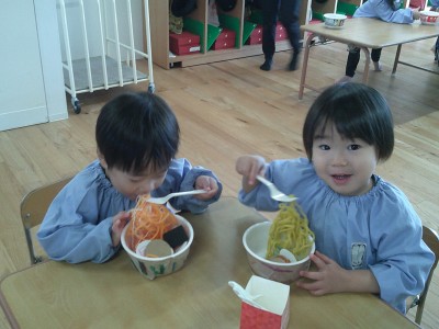 あさひ組とほのか組いっしょに遊んでみました!みんなとっても上手にお店屋さんになってラーメンを作ってくれたり、ジュースやたこやき、からあげをお店の人になりきって楽しんでいました。お客さんも嬉しそうに食べていましたよ(o^―^o)