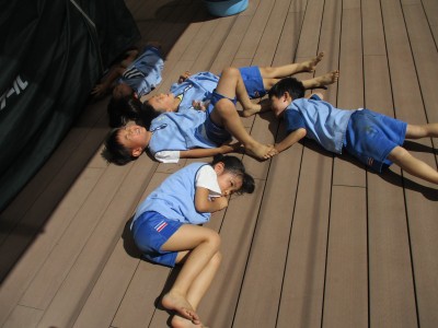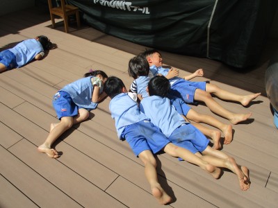 5歳児クラス今日は2階のテラスで大玉の練習をしました!