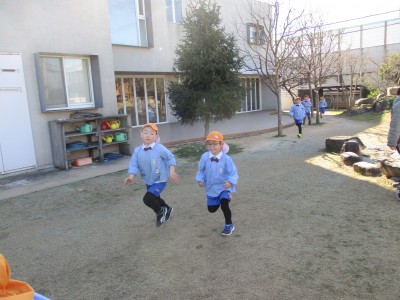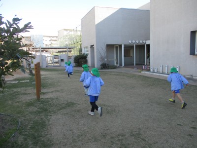 園庭に出るとまずはマラソン!