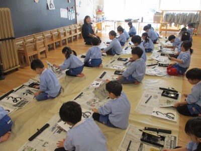 5歳児クラス書き初めをしました。
