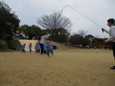 公園に到着した時は少し寒かったですが、大繩をして体がポカポカになりました(*^-^*)