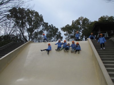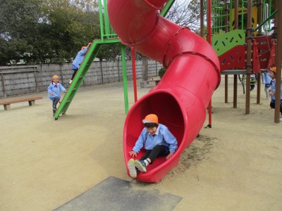この滑り台は少し勢いがありましたが、友達と手を繋いで一緒に滑るなど、
