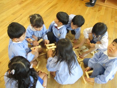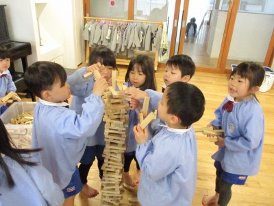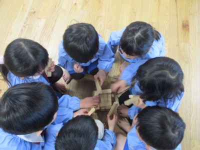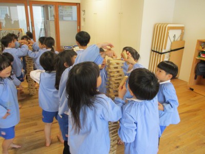 - てるひ・ひなた組 クラス対抗積み木ゲーム!
