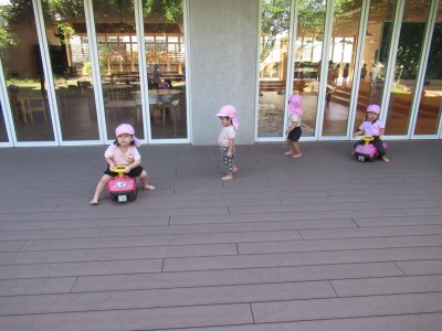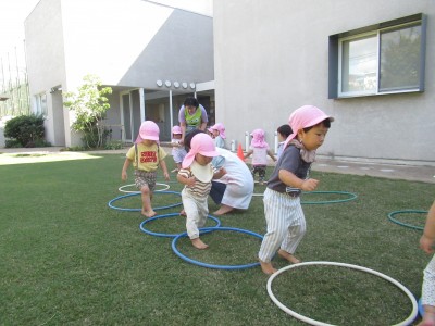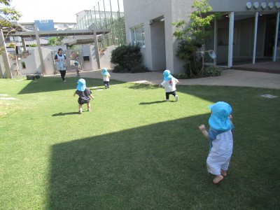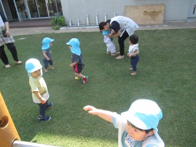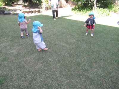 0歳児クラス今日は園庭でたくさん身体を動かして遊びました♪