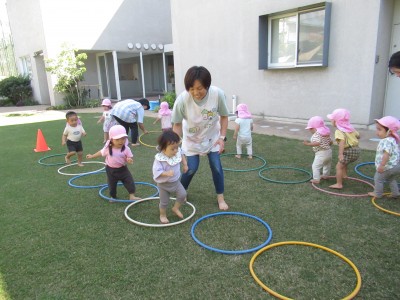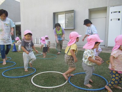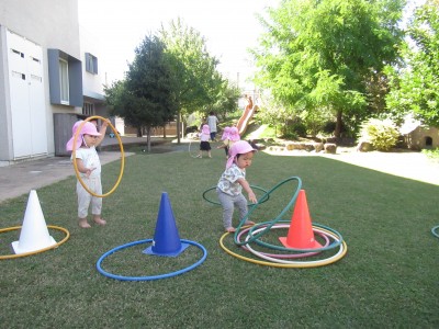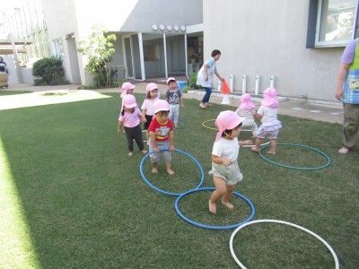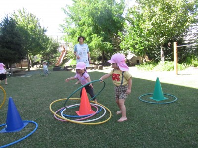 フープで遊んだよ!コーンにいっぱい輪投げ楽しかったね!とても上手だったよ(*^^*)