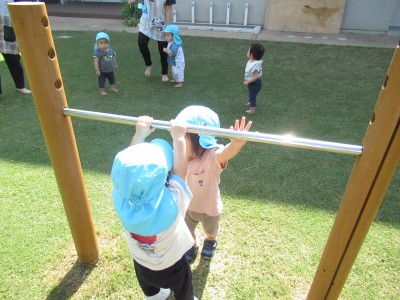 あかつき組で貸し切りだったため、気になるところを自由に散策したり、鉄棒を握ってみたり…