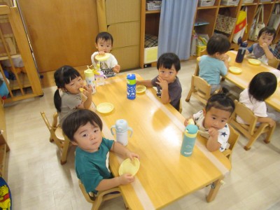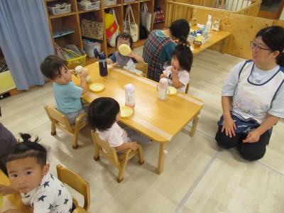1歳児クラスおやつの時間です~今日のおやつは何かな?