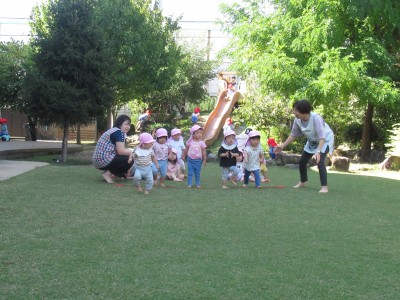 2歳児クラスお天気が良かったので、園庭に行きました!