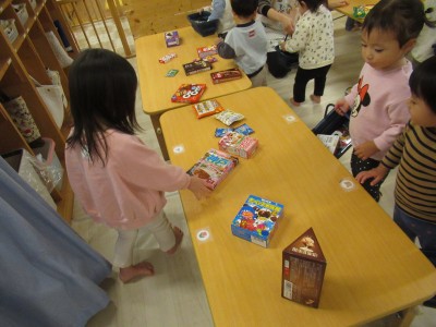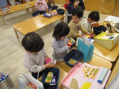 2歳児クラス今日は、お兄ちゃんお姉ちゃん達のお店屋さんに行ってきました♪