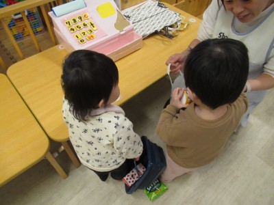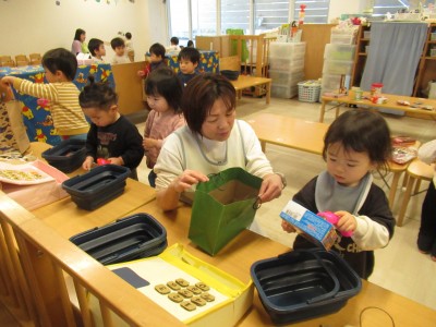 3歳児クラス今日は、来週のお店屋さんごっこのシミュレーションいうことで