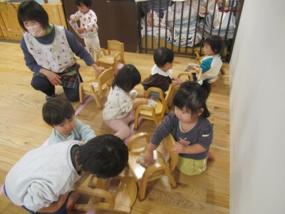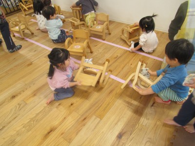 「ここから置こう!」「どんな形に置こうかな!」とお友達と協力して積み木を並べていました☆初めの1,2回ほどは全部倒れず失敗することもありましたが、どうすれば全部倒れるか並べ方を考えながら取り組む姿が見られました!