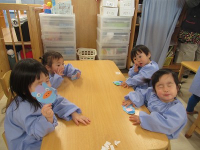 0歳児クラス今日は馬の福笑いをしました!