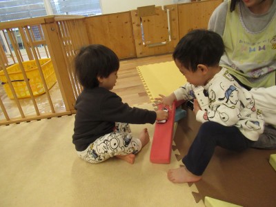 少し怖いシーソーだったけど、みんなで挑戦したよ!出来たときには、「やったー!」「おもしろかった!」といい笑顔を見せてくれました(^^♪