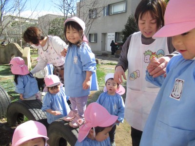 年長さんがエミールで過ごすのも10日をきりましたが、残り少しの園生活も異年齢でもたくさんかかわり、楽しい思い出を作ってもらいたいです。