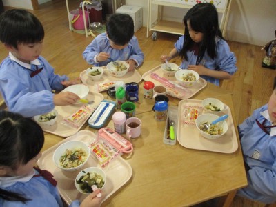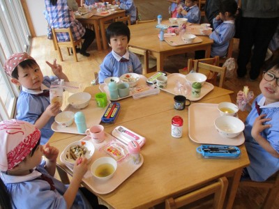園に戻ってきてからはお楽しみのお弁当の時間♪