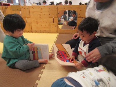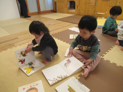 1ページずつ上手にめくって絵を見たり、声に出して読んだりと夢中で読む子どもたちでした(#^^#)