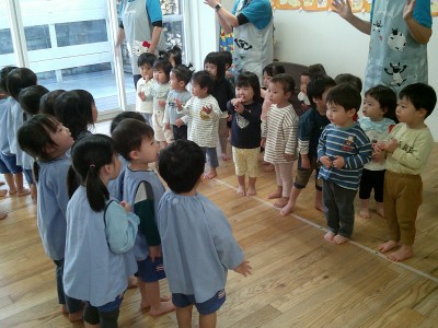 1歳児クラスおやつの時間です~今日のおやつは何かな?