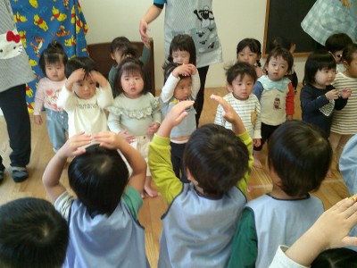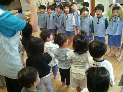 お歌の時間・・・ピアノに合わせ振りを付けながら元気いっぱい歌っています~