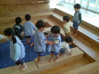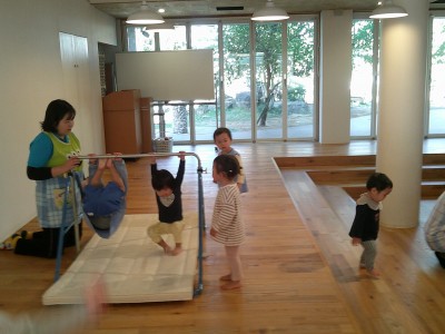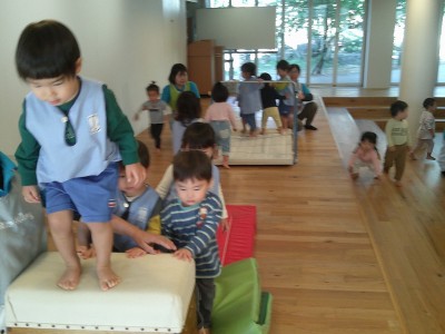 今日は、一本橋迷路を渡って遊びました!橋から落ちるとワニさんに食べられちゃうぞ!
