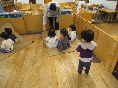 あさあけ組さんは、しののめ組のお部屋に入ると少しドキドキした様子...