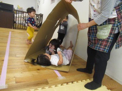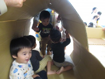 1歳児クラス段ボールあそびをしました(*^-^*)