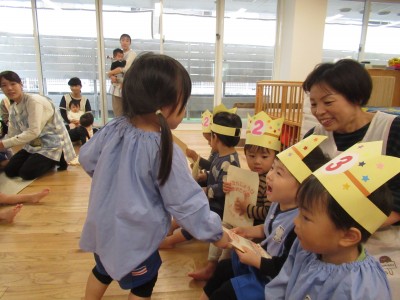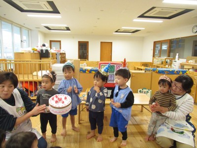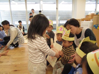 大好きなお友達から絵本をもらったり、お歌のプレゼントをもらったりとても嬉しそうでした(*^^*)みんなから「おめでとう」と言ってもらうと大きなの声で「ありがとう」も言えました!!