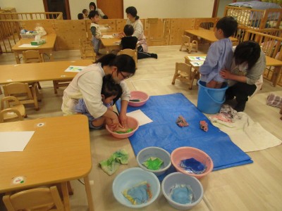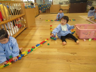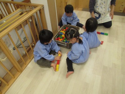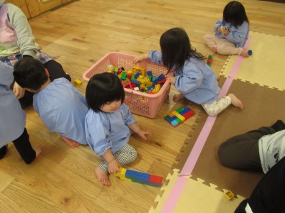 0歳児クラス 1歳児クラス今週は、お休みのお友達が多く、あさあけ組、あかつき組一緒に遊んだよ!
