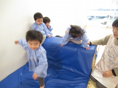 今日は、運動遊びをしました(*^-^*)高いお山に登ったよ!みんなのお顔必死でした(>_<)
