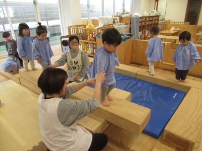 少し怖いシーソーだったけど、みんなで挑戦したよ!出来たときには、「やったー!」「おもしろかった!」といい笑顔を見せてくれました(^^♪