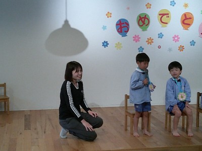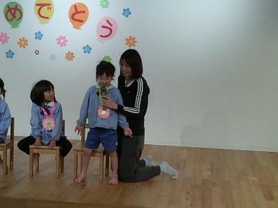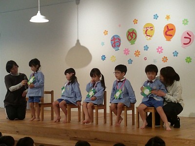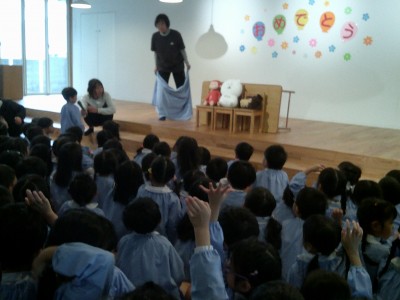 先生の出し物の前に、司会の年長さんが手遊び『やきいもグーチーパー』をしてくれました♪