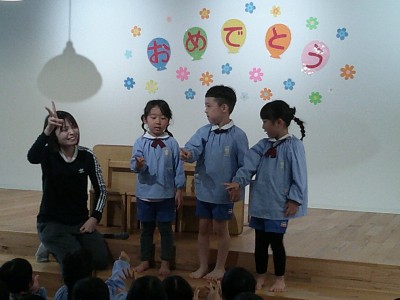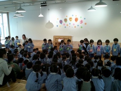 3歳児クラス 4歳児クラス 5歳児クラス 行事10月生まれのお友達の誕生会がありました。