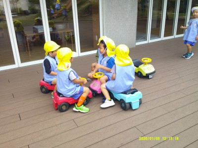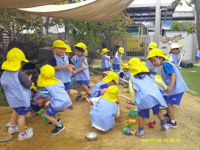 だるまさんがころんだ、鉄棒、キッズカー、虫、ドングリ探し、砂場遊び、滑り台。好きな遊びを選んで遊びました♪4月の頃は好きな遊びの中にいるお友達と話したり遊んだりしていたのが今ではお友達を誘って何で遊ぶか一緒に決める姿が増えてきました(^^♪