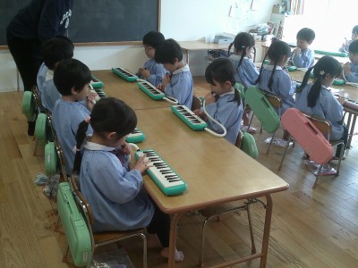 4歳児クラス朝から鍵盤ハーモニカを頑張りました!