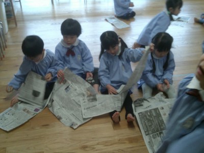 よく頑張ったので久しぶりに新聞紙遊びをしました!
