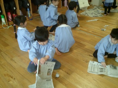 雪合戦ではなく、新聞紙合戦をしました!