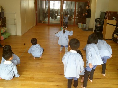 3・4歳児はフラフープくぐり、3・5歳児は海賊だるまさんをしました!(^^)!