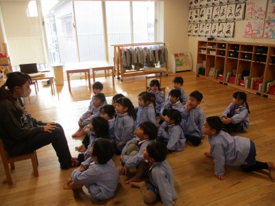 0歳児クラス 1歳児クラス 2歳児クラス 3歳児クラス 4歳児クラス 5歳児クラス 行事絵本の読み聞かせをしてくださる方に来ていただき、読み聞かせ会がありました。