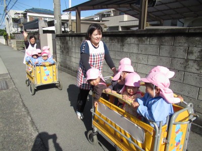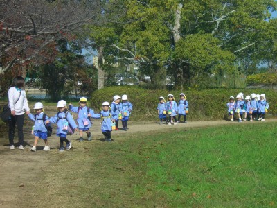 3歳児クラス 行事今日は、楽しみしていた遠足です!と~ってもいいお天気で子ども達もごきげんです☆