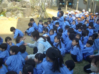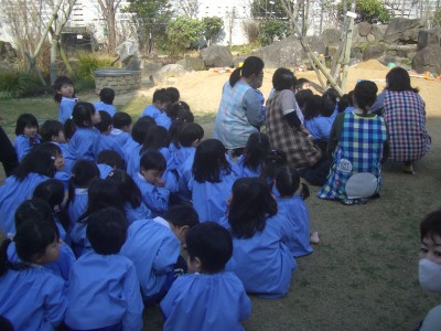 4歳児クラス生活発表会を二日後に控え、最後の練習ははるひ・うらら組で、見せ合いっこをしました。